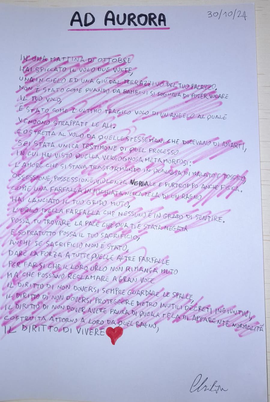 Un’ospite della Comunità di Pontevico ha voluto dedicare una lettera a una ragazza protagonista di un fatto di cronaca tanto recente quanto grave: