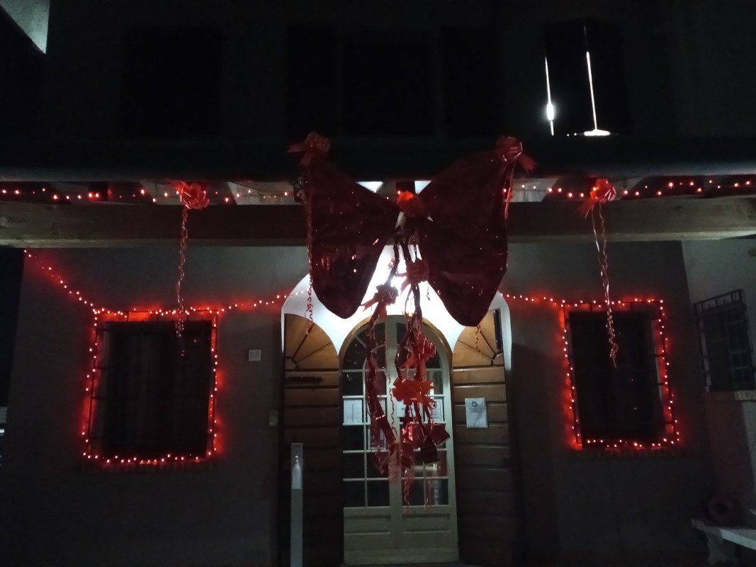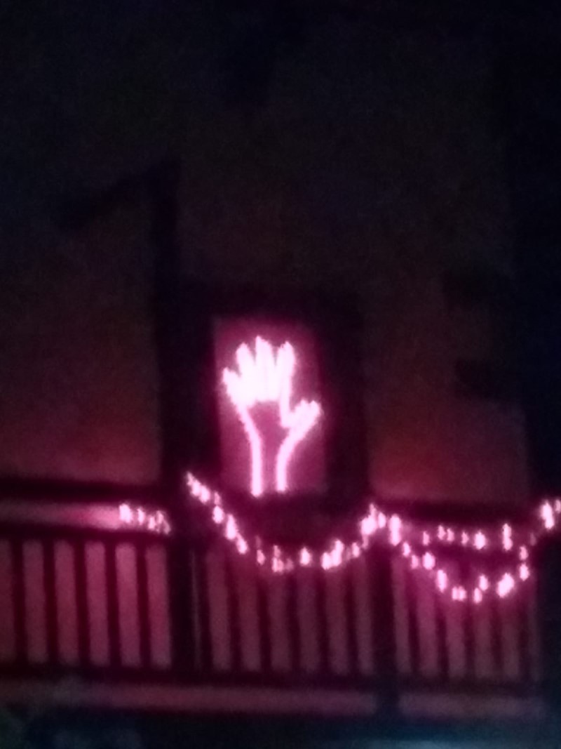 «Il gruppo mamme della Comunità di Cividate, in occasione della Giornata contro la violenza sulle donne, si è adoperato con l’aiuto degli educatori e del nostro volontario Angelo, nel realizzare una mano luminosa affissa sul terrazzo della Struttura, oltre che un disegno che è stato posizionato all’ingresso degli uffici».