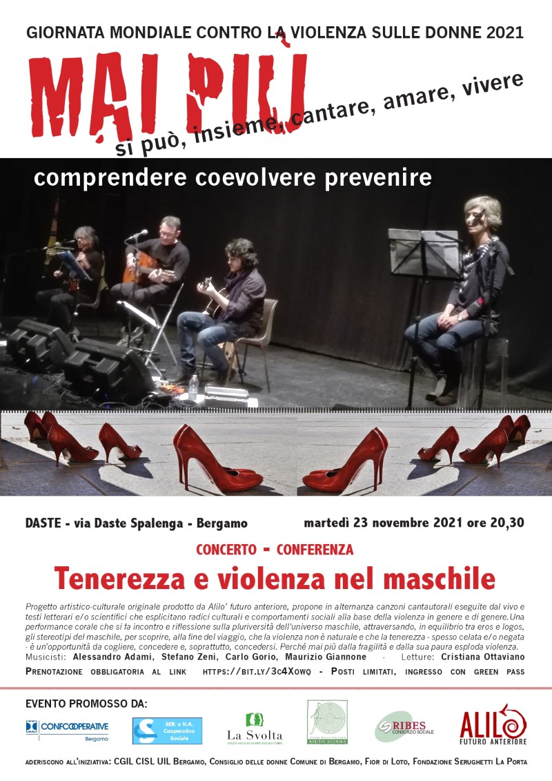 Confcooperative Bergamo, concerto – conferenza: «Tenerezza e violenza nel maschile»