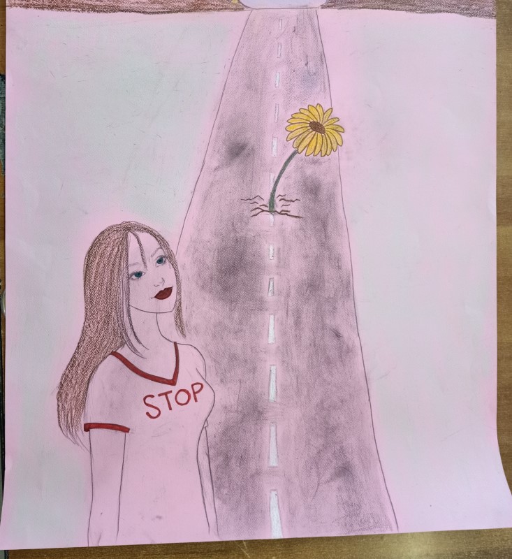 In seguito abbiamo chiesto alle ragazze di rappresentare con delle immagini la possibilità di ribellarsi alla violenza contro le donne lavorando, in particolare, sul concetto del “rialzarsi”