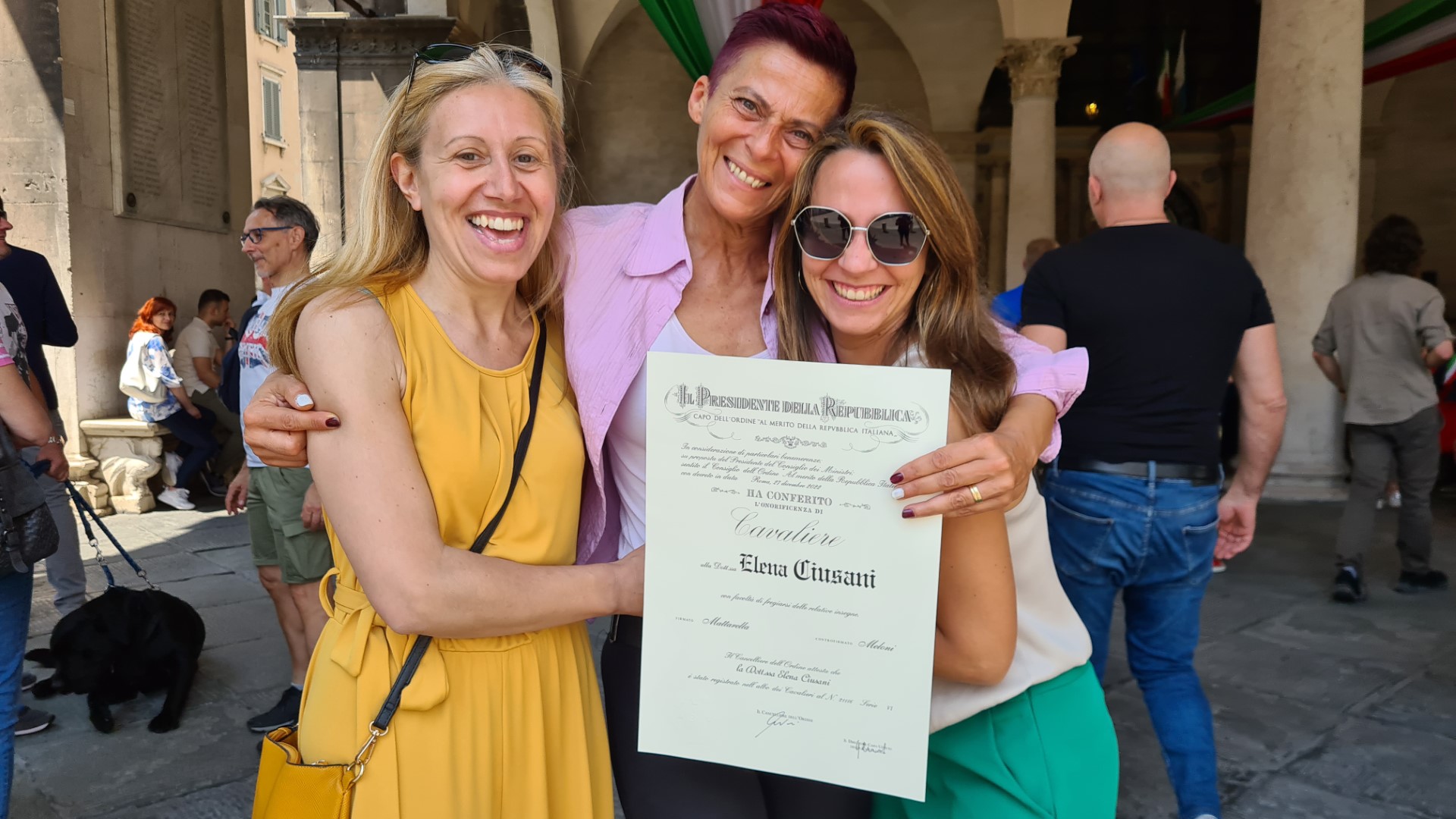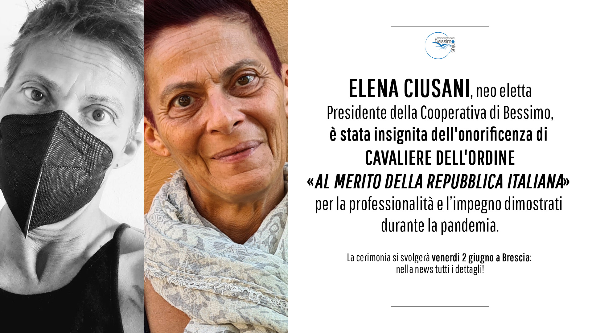 Elena è stata insignita del titolo di Cavaliere venerdi 2 giugno alle 11.30 sotto il portico di Palazzo Loggia nell’omonima piazza in città durante la cerimonia dedicata alla Festa Nazionale della Repubblica al via alle 10.