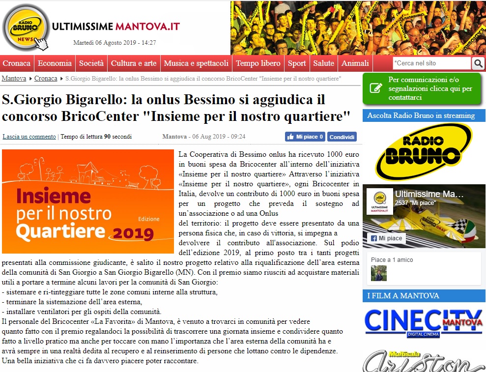 Leggi l’articolo pubblicato da RadioBruno News – ultimissime Mantova.it: