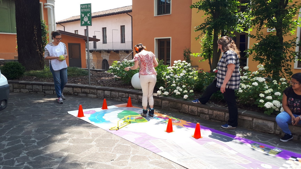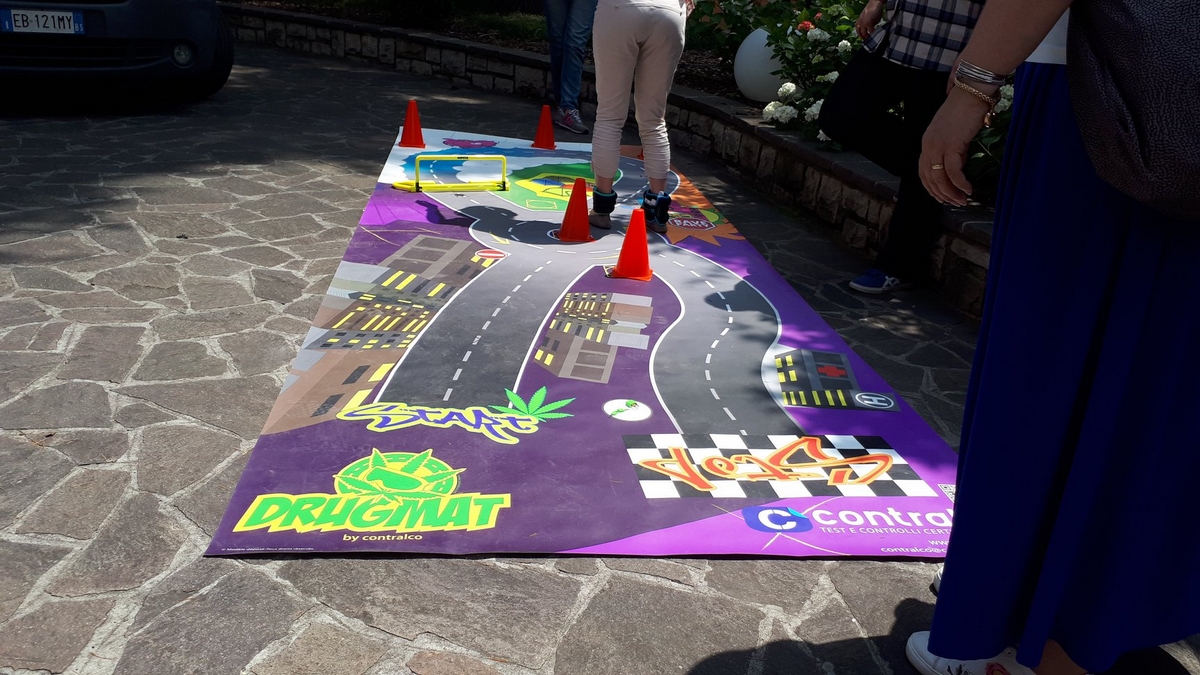 Nello spazio esterno, fuori dall’auditorium, grazie all’iniziativa di Alessandra Lomini, Roberto Laini, Emanuela Damiolini ed Elisa Arcari è stato possibile «toccare con mano» il camper dell’Unità di Strada di Cremona, vedere il banchetto dell’Unità Mobile Giovani e sperimentare il «tappeto stradale» per la simulazione della guida sotto l’effetto di sostanze, alcool o sonnolenza. Ci ha fatto molto piacere poter accogliere anche alcuni studenti degli Artigianelli che, usciti dalle aule al termine della mattinata scolastica, hanno voluto mettersi in gioco e sperimentare le prove in prima persona.