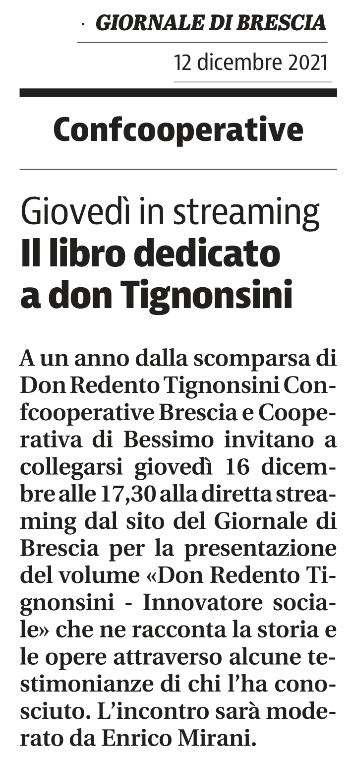 Leggi la notizia pubblicata sul Giornale di Brescia il 12/12/2021: