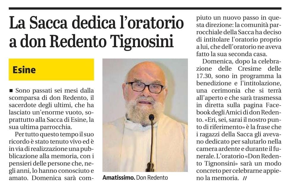di intitolare l’oratorio a Don Redento che qui ha vissuto gli ultimi anni.