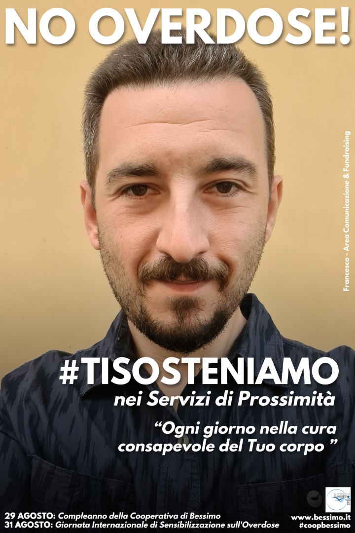 Abbiamo chiesto ai colleghi di tutti i servizi di pensare ad una frase che fosse rappresentativa del perché offriamo e garantiamo strumenti protettivi, sostegno e sensibilizzazione sull’overdose e che iniziasse, appunto, con l’hashtag #TISOSTENIAMO e abbiamo immortalato diverse persone della cooperativa che non compaiono mai nelle azioni di comunicazione.