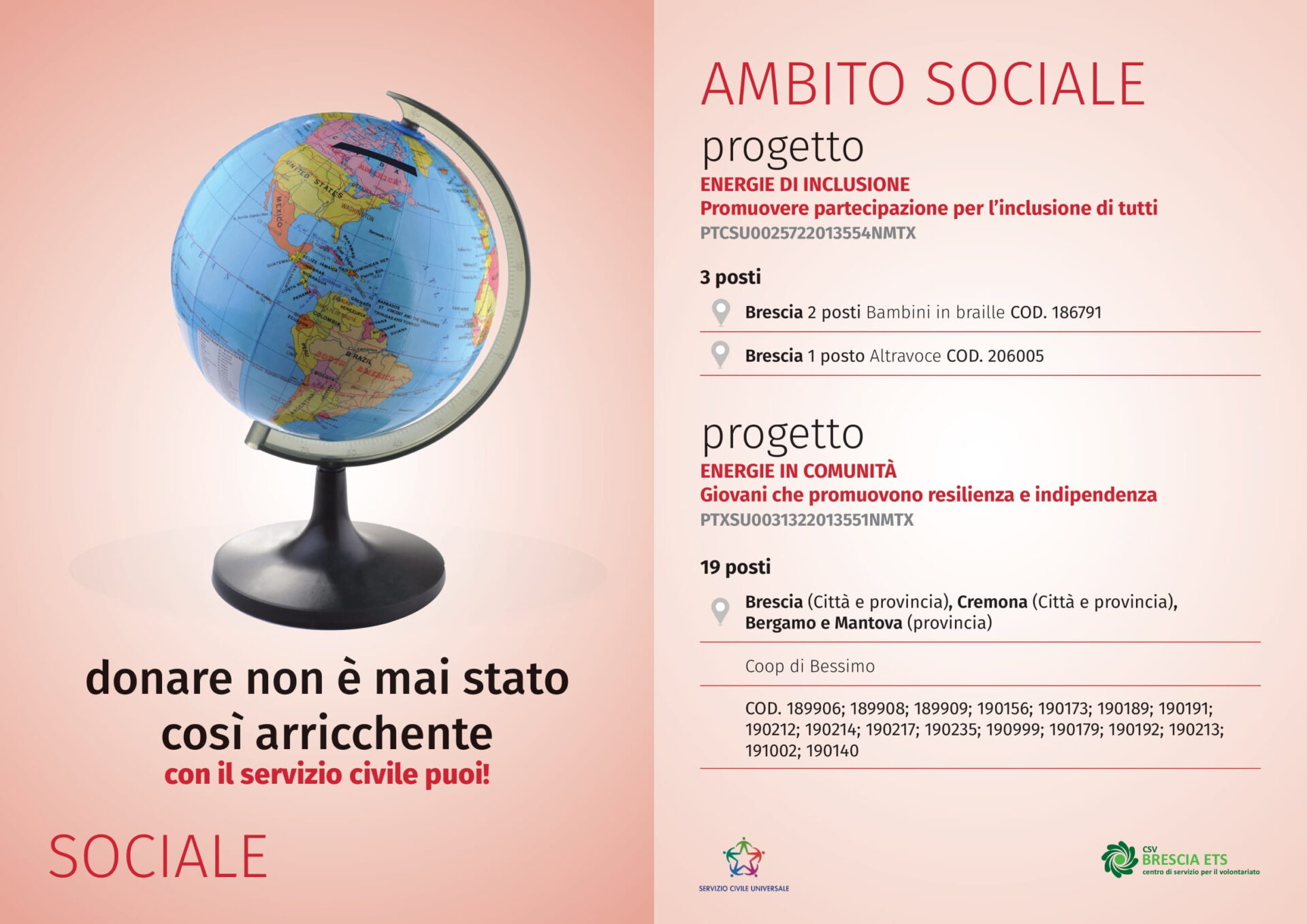 Questo link puoi trovare tutte le informazioni utili sui progetti tra cui anche il nostro: https://www.csvlombardia.it/brescia/post/bando-servizio-civile-universale-i-progetti-gestiti-da-csv-brescia/