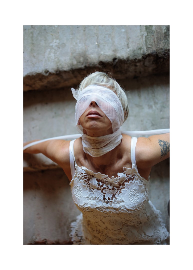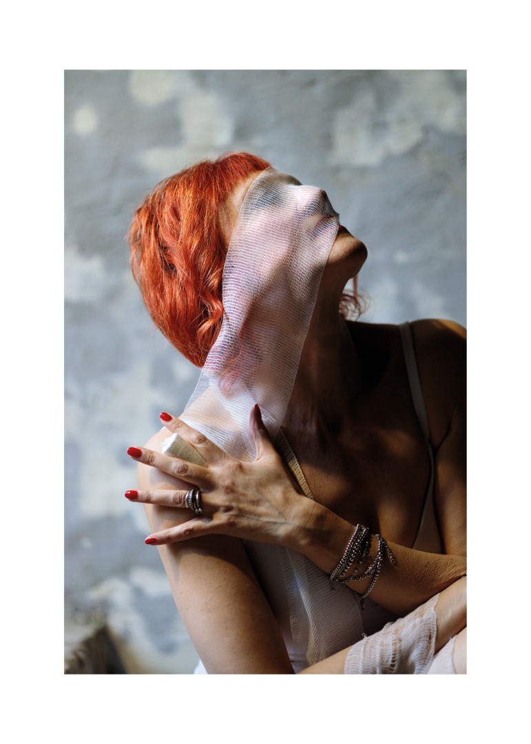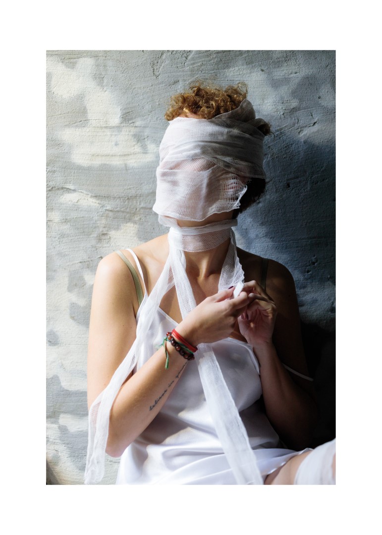 La mostra di Arrigoni presenta 50 immagini di volti di donne avvolti nella garza alle quali si aggiungono, per l’occasione dell’allestimento a Bergamo, testimonianze e riflessioni scritte a mano di diversi ospiti di alcuni servizi della Cooperativa di Bessimo ONLUS che, dal 1976, si occupa di cura e riabilitazione di persone con problemi di dipendenza che vivono contesti di marginalità anche grave.