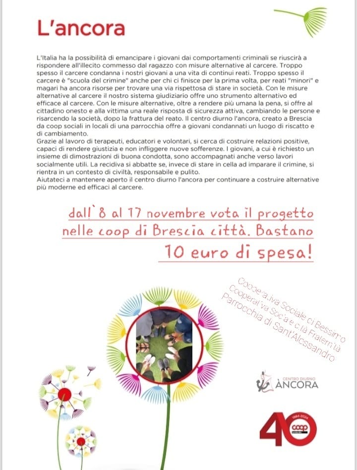 Da oggi, 8 novembre, e fino al 17 novembre sarà possibile votare il progetto: basterà infatti effettuare una spesa (in uno qualsiasi dei supermercati di Brescia) e sarà possibile ritirare alla cassa una speciale cartolina che dovrà essere inserita all’interno di un’urna dedicata presente in ciascun punto vendita.